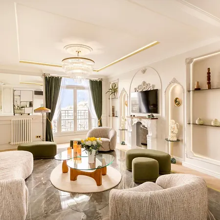 This apartment lies in the Belleville district, approximately 10 minutes by car from Louvre Museum. Seine River is located 2.2 miles away and Orly airport is located 16 miles from the property.